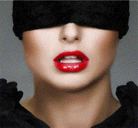 сети баннер, на котором девушка с красными губами и в закрывающей глаза повязке