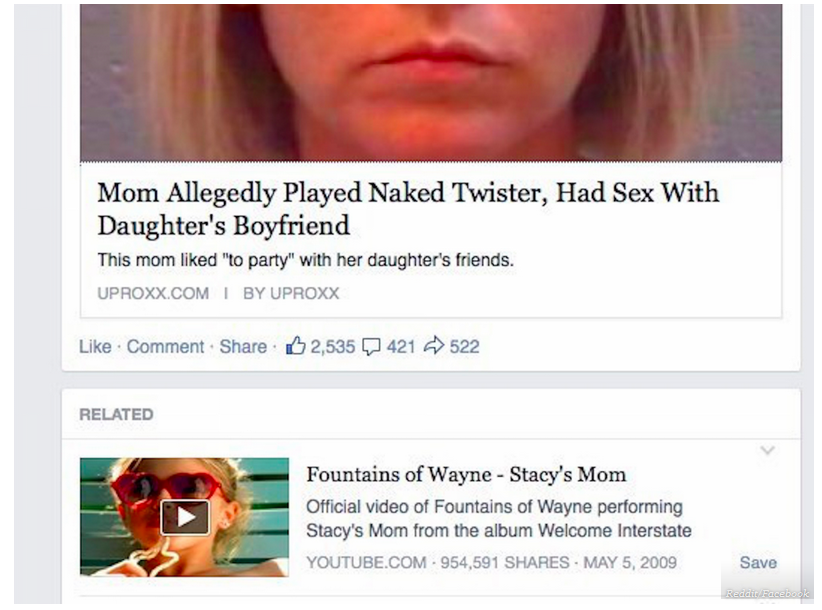 6. В Facebook также были проблемы с размещением - реклама видео к «Мама Стейси», классической песни о подростковом возрасте и проблеме влюбленности в маму своей подруги, появилась рядом с реальным примером подобной ситуации из жизни.