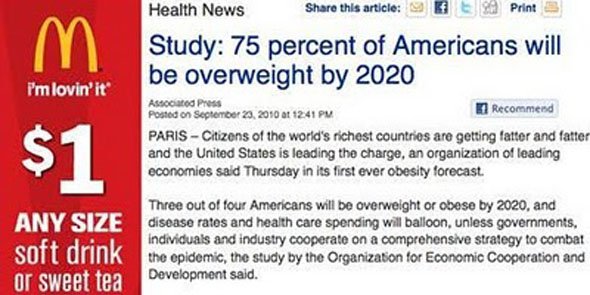 21. Продажа в Макдональдсе безалкогольных напитков любого объема всего за $ 1 можно считать потенциальной причиной ожирения.