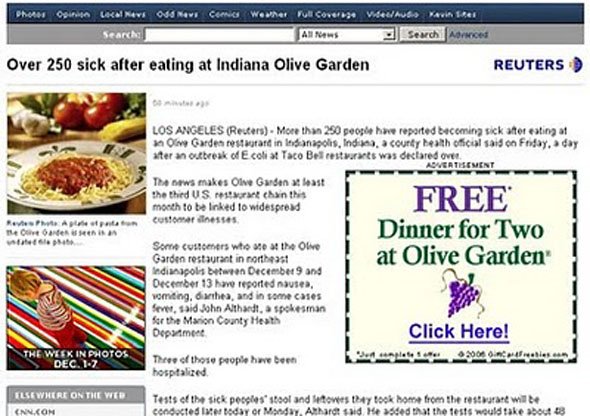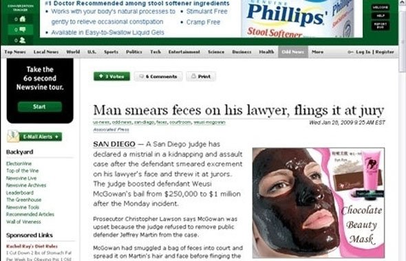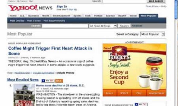 17. Объявление Folgers на Yahoo News выглядит противоречиво рядом с рассказом о напитках, вызывающих сердечные приступы.