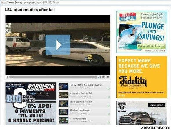 14. Toyota явно не предусматривала ставить рекламу со слоганом «Чувствуете себя в ловушке внутри вашего старого автомобиля?» рядом с рассказом о автокатастрофе на MSNBC.