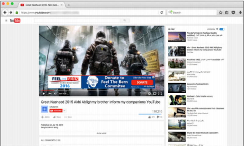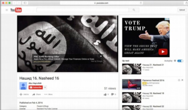 3. В этом году баннер «Голосуйте за Трампа» расположился рядом с видео, где отображается флаг ISIS.
