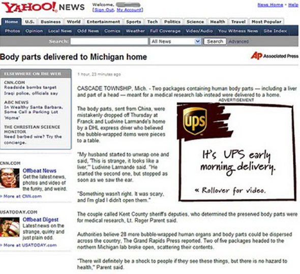 26. Что-то подсказывает нам, что расчлененка это не тот вид товара, с которым служба доставки UPS готова работать.