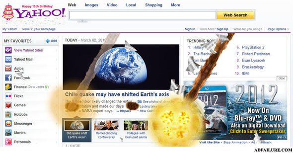 9. Это еще хуже. Новость о землетрясении в Чили была прервана падающими метеорами из рекламы фильма «2012».