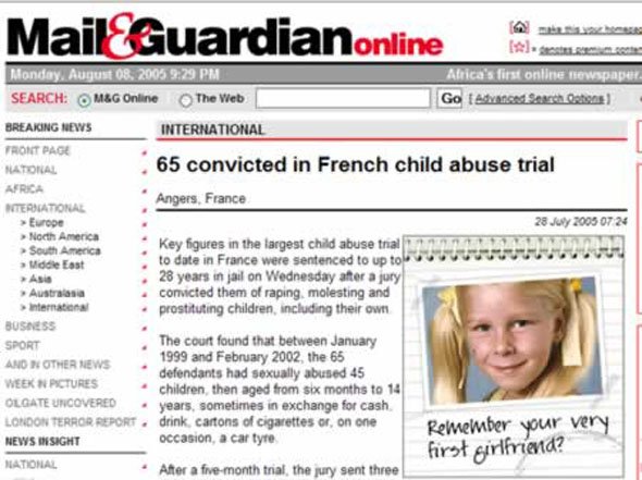 18. Эта недоразумение в 2005 году является одним из худших ляпов, которые мы видели. Баннер призывает вспомнить первую девочку, в которую был влюблен в детстве. И рядом с трогательным портретом с косичками - заметка о суде по обвинению в массовых издевательствах над детьми