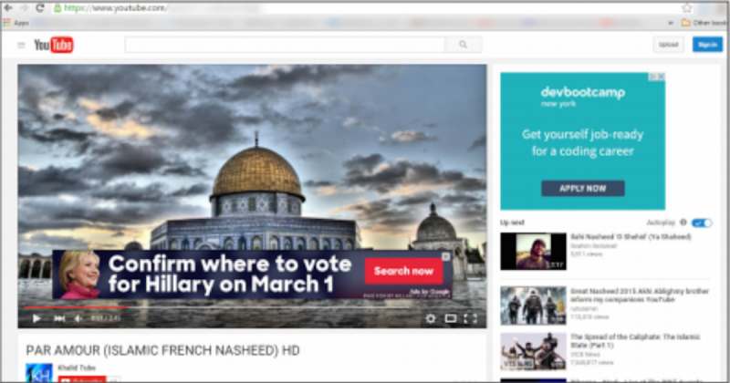 4. В то время как агитация в поддержку Клинтон красовалась перед видео про «Аль-Хайят Media Center», принадлежащий тоже ISIS.