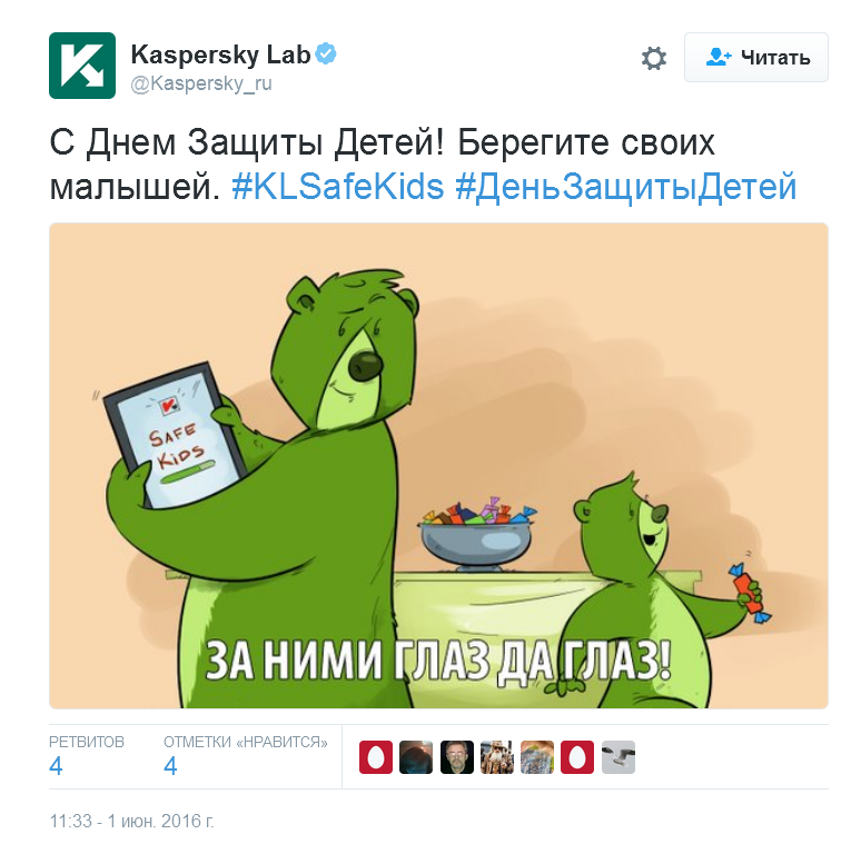 Kaspersky в Twitter призвал беречь детей.
