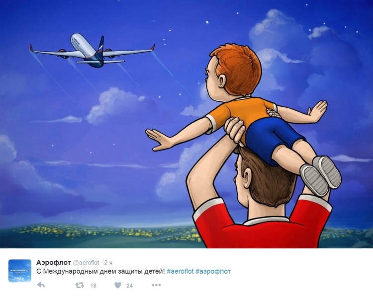 «Аэрофлот» запостил в честь Дня защиты детей картинку в своем стиле.