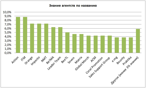 2. По уровню наведенного знания в 5-ку лидеров вошли агентства Action, ITM, Orange, Impacto, NMT.