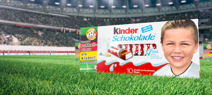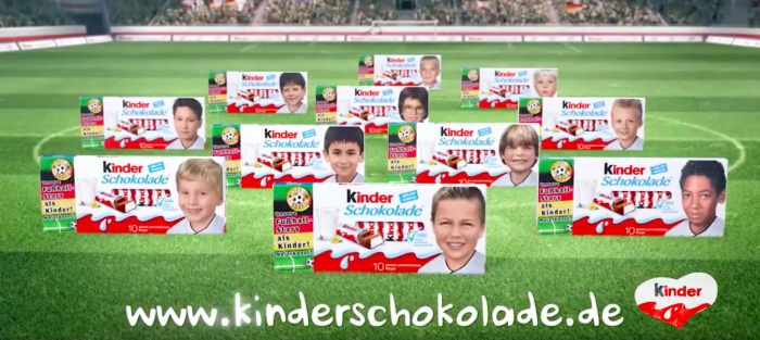 За две недели до старта Евро-2016 Kinder решил поддержать национальную сборную Германии по футболу. Знаменитая упаковка Kinder Chocolate узнаваема по всему миру благодаря портрету юного блондина, но спустя несколько десятилетий производитель сладостей для детей решил сменить своего амбассадора и разместил на упаковке детские фотографии футболистов.