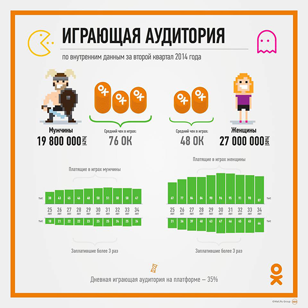 Однако в целом, по статистике ресурса, женщины составили большинство геймеров в «Одноклассниках» — 58 процентов всех пользователей игр.