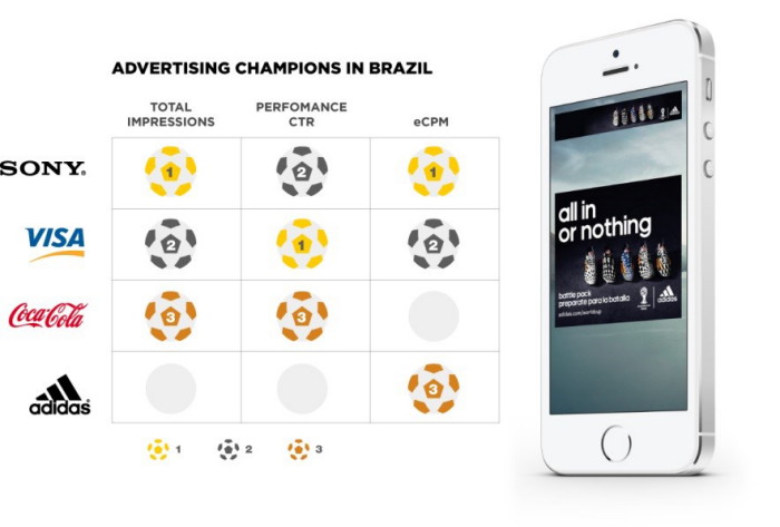 Что касается мобильных партнеров кубка FIFA в этом году, то самыми популярными среди мобильных пользователей стали Sony и Visa. Sony получила больше всего просмотров мобильной рекламы, а кампании Visa стали самыми эффективными по показателю CTR. Coca-Cola и Adidas идут следом за лидерами.