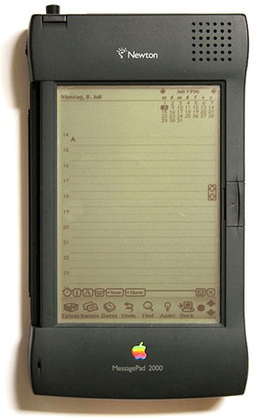 Newton messagepad — первый PDA, созданный Apple. Саму аббревиатуру PDA (Personal Digital Assistant) придумал гендиректор компании Джон Скалли. Newton работал на собственной операционной системе Newton OS и умел среди прочего распозновать рукописный текст, впрочем, как оказалось, недостаточно хорошо для того, чтобы иметь успех. Почти одновременно с запуском Newton в компанию после 13 лет отсутствия вернулся Стив Джобс — и началась новая эра.