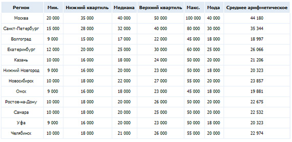исследуемых регионах позволяет выделить несколько основных зарплатных