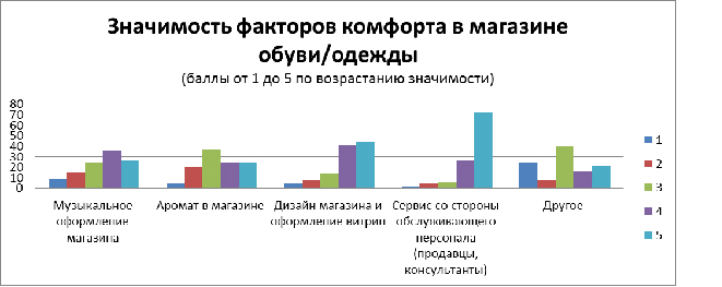 Кроме того, участники опроса отметили, что, несмотря на важность качества сервисного обслуживания (28% в продуктовых магазинах и 30% в fashion-магазинах) и оформления магазинов (по 26%), музыкальное сопровождение и аромат также имеют большое значение для целевых аудиторий (19% и 15% - в fashion-магазинах, 6% и 26% - в продуктовых) .