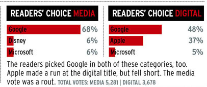 Это - медиапрорыв прошлого десятилетия: наиболее быстро растущая, самая динамичная, провокационная и, возможно, самая важная медиакомпания 2000-ых не произвела абсолютно никакого собственного содержания. Ни одной статьи, ни одного фильма - ничего. Google стала ярчайшим символом американского предпринимательства за прошедшие 10 лет и одной из самых влиятельных медиакомпаний. По существу, Брин и Пейдж - технические вундеркинды, которые создали алгоритм, делающий доступной для поиска необъятность интернета. Они создали медиагиганта, который смог вытянуть из экономического кризиса 2008 года $22 млрд, и дестабилизировать равновесие сил в СМИ. Но, вероятно, самым значимым для поколения молодых технических предпринимателей является то, что успех Брина и Пейджа – истинное воплощение возможностей.