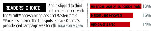 (В читательском выборе победила кампания против курения, Get a Mac стал только третьим)