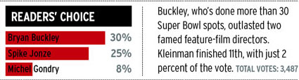(Bryan Buckley создал более 30 роликов для Super Bowl, а Клейнман в списке выбора читателей только на 11-м месте)