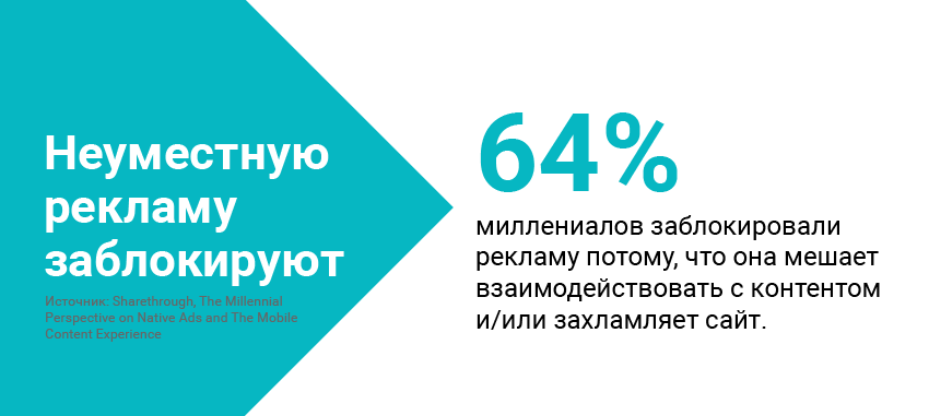 Для миллениалов пользовательский опыт — определяющее понятие, а положительный рекламный опыт влияет на все их присутствие в онлайне. Удобство — главное для поколения людей, которые повзрослели во время расцвета мобильных технологий и быстрого интернета.