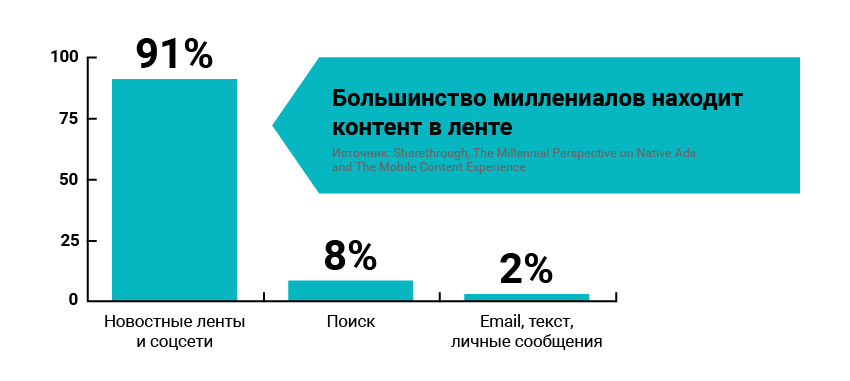 80% миллениалов считают встроенную в ленту рекламу удобной;