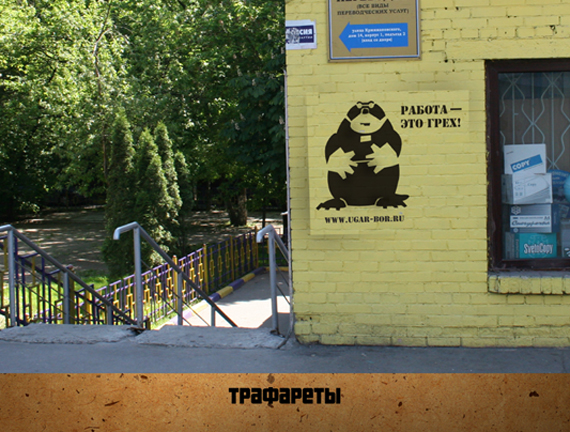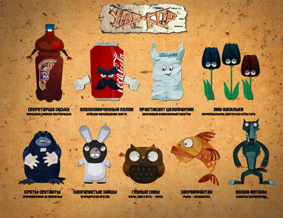 Стикеры на схемах электричек. С одной стороны это всего лишь нестандартный рекламный носитель, хотя сейчас мы практически любой подмосковный лес можем смело назвать Угар-бором. По нашей задумке сериал должен был напомнить об этом зрителям, ведь сумасшествия нам достаточно и в городе, а в лесу должны царить гармоничные природные законы.