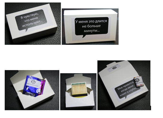 Эти коробочки появились в пятницу утром на столах у сотрудников в четырех офисах крупных компаний и потом распространялись в BBDO. Результат: в субботу вечером – тридцать записей и почти двести комментариев, количество посетителей, к сожалению, отследить было нельзя, потому что мы отказались от счетчиков.