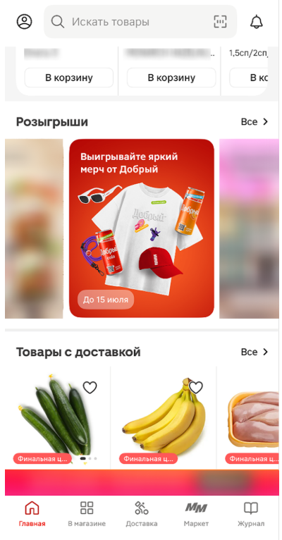 Трафиковые кампании. Их запускали через «Яндекс Директ», «VK Рекламу», а также через отдельные сервисы: собственную платформу AdvCake, платформу Beeline, размещения в агрегаторах скидок «Едадил» и «Чекскан». Пользователям предлагали перейти в приложение «Магнита» и поучаствовать в розыгрыше мерча.