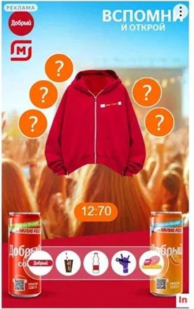 Рекламный баннер с мини-игрой. Чтобы больше вовлечь аудиторию, команда AdvCake создала интерактивный баннер, который показывался на сайтах. Суть в том, что пользователю нужно запомнить расположение нашивок и затем открыть их по памяти. А после прохождения игры на баннере появлялось предложение получить мерч от «Магнита» и «Добрый».