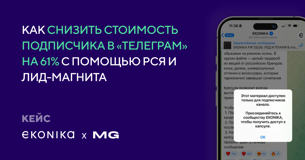 Кейс EKONIKA & MediaGuru: как снизить стоимость подписчика в «Телеграме» на 61% с помощью РСЯ и лид-магнита