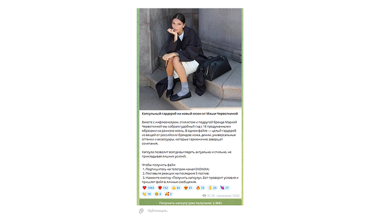 3. В канале его ждала кнопка для скачивания гардероба.