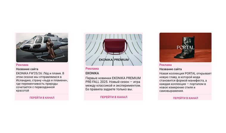 рекламу в поиске по ключевым словам (названия конкурентов, фешен-блогеры);