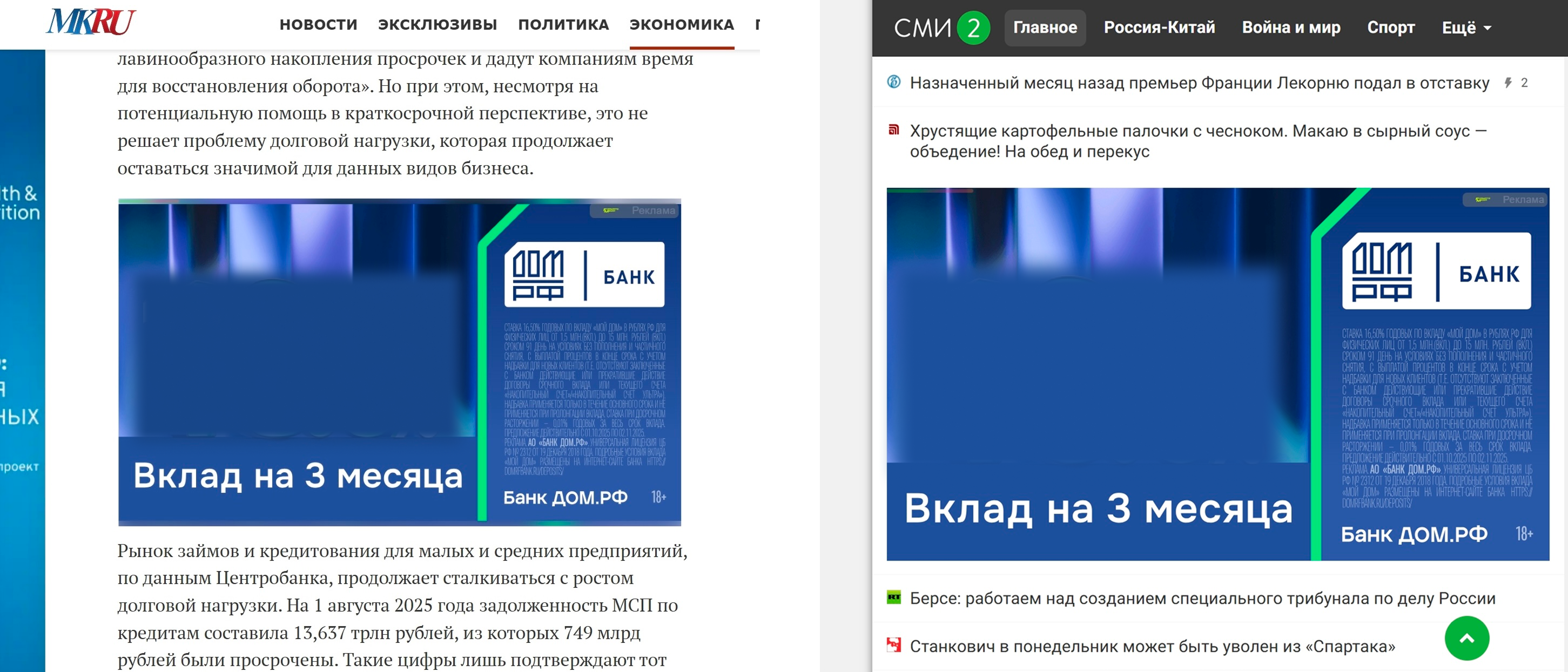 В условиях высокой конкуренции на рынке вкладов и рекламной перегруженности онлайн-медиа привлечь внимание пользователя и мотивировать его к действию — непростая задача. Formats Media и Банк ДОМ.РФ решили ее с помощью рекламных баннеров, размещенных на ведущих новостных и тематических ресурсах Рунета. В их числе, например СМИ2, ТАСС, «Аргументы и факты», «Комсомольская правда», «Ведомости», «Российская газета».