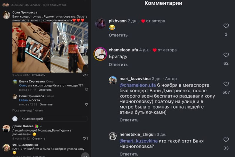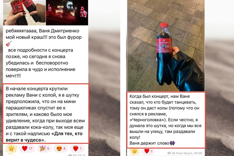«Спонсорство двух концертов Вани Дмитриенко стало для “Черноголовки” Cola эффективным решением для усиления связи между брендом, артистом и молодой аудиторией. Органичная интеграция и резонанс в соцсетях закрепили успех кампании и повысили лояльность активных участников».