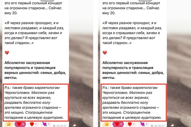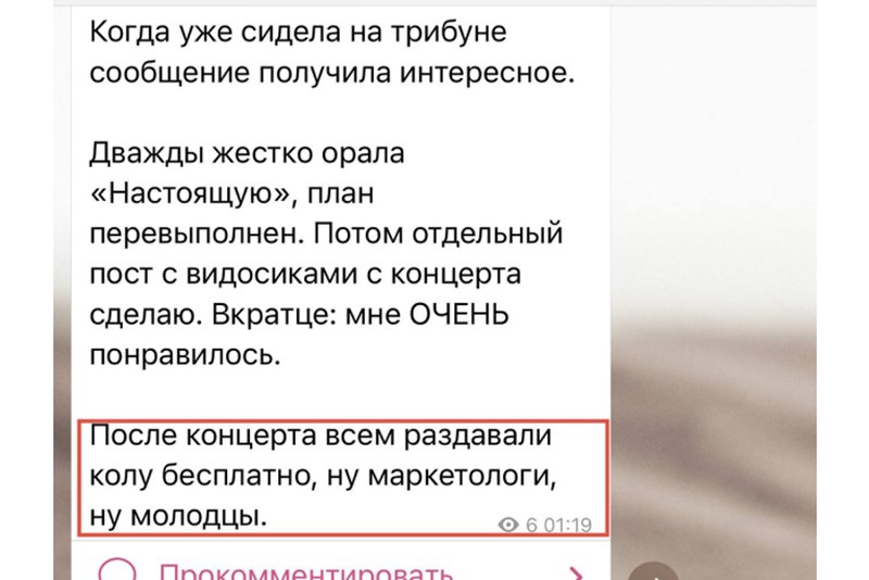 — Каждый зритель после концерта на выходе получал напиток Cola от «Черноголовки» в лимитированной новогодней бутылке с пожеланиями. Тысячи людей выходили из «Мегаспорта» с напитком в руках. Площадка у арены, переходы метро и соцсети зрителей, естественно, запечатлели атмосферу концерта — бренд оказался органичной частью общего эмоционального настроения.