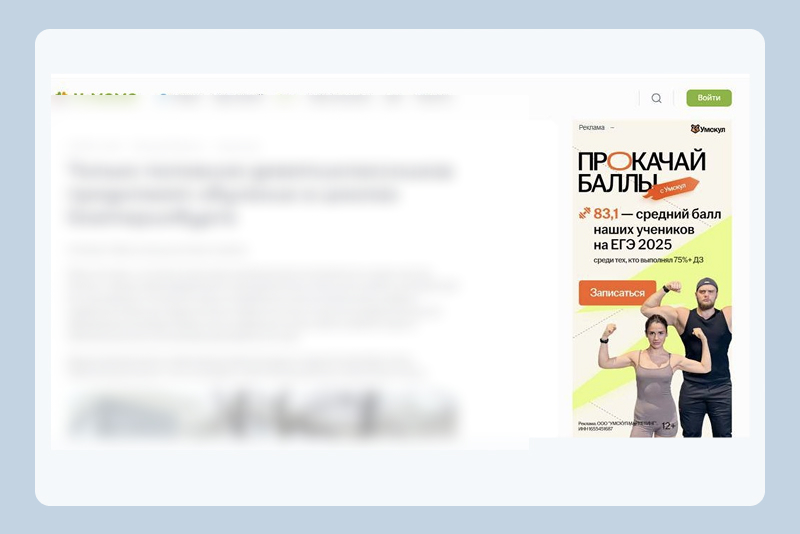 В ходе размещения также была реализована технология RTA BrandSafety+, которая обеспечила качественную среду для показа рекламы. В результате исключили более 460 площадок с признаками небезопасного трафика и нерелевантного окружения. Это позволило выйти на минимальный уровень фрода и обеспечить безопасность репутации клиента, что крайне важно в категории детского онлайн-образования.