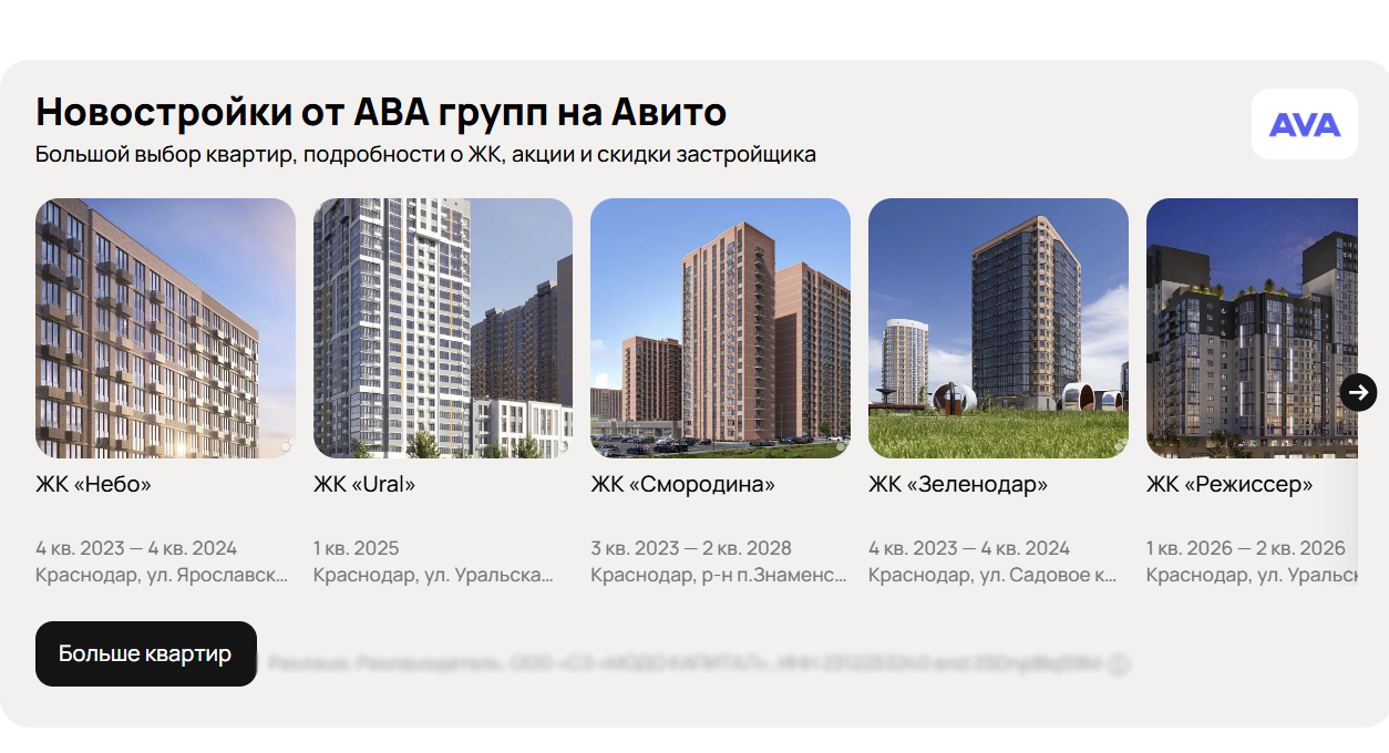Для промо предложений застройщика использовали инструменты «Авито Недвижимости» и «Авито Рекламы».