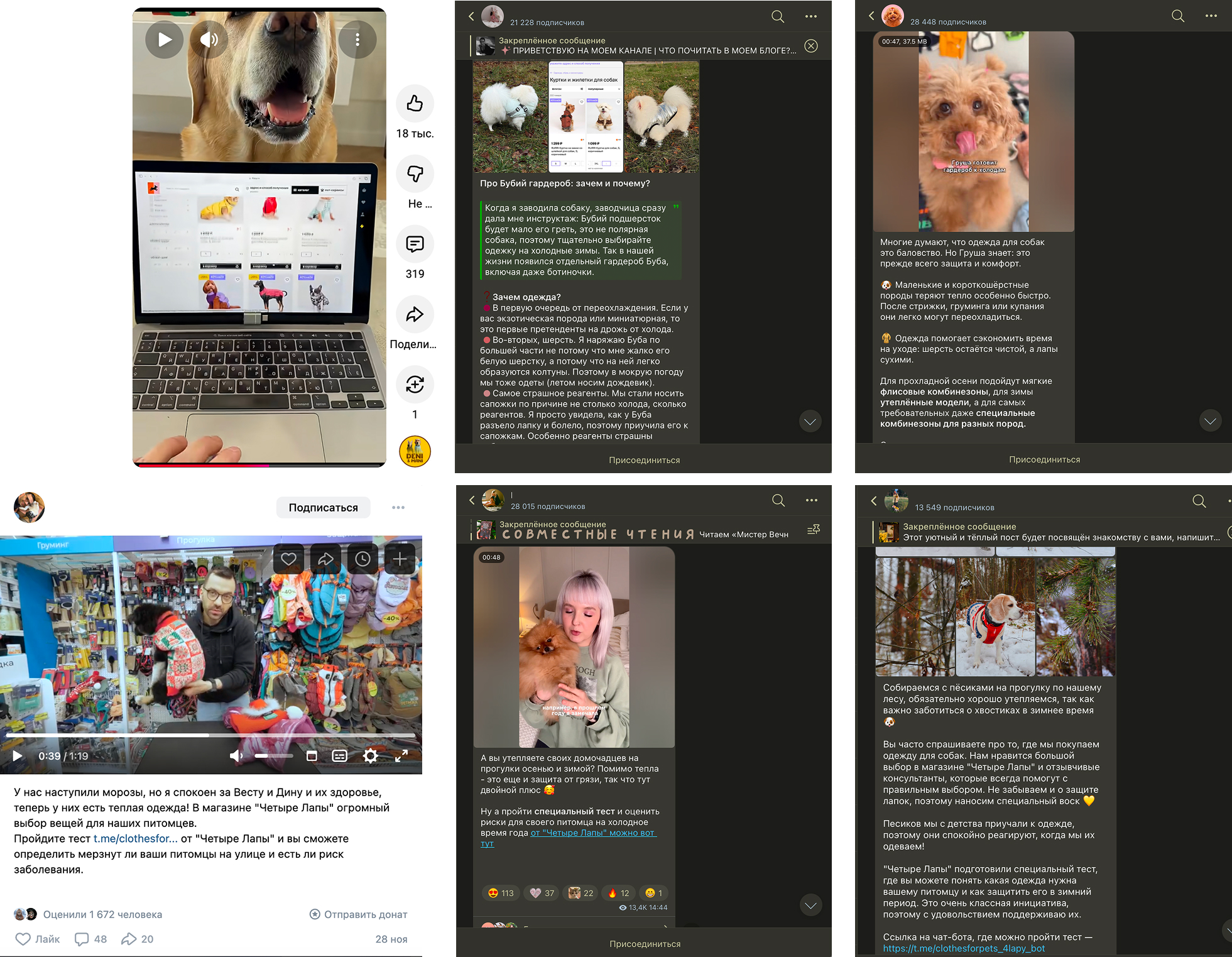 Контент создавался вместе с блогерами из категории пет-родительства и ухода за животными. Через личный опыт и понятные бытовые ситуации они объясняли, почему защита от холода важна, и показывали одежду как часть осознанной заботы, с которой в «Четыре Лапы» все становится проще.