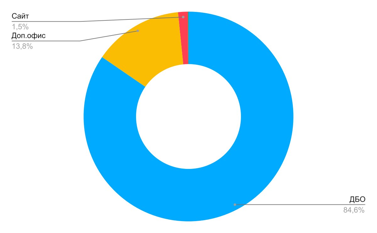 Такой подход позволил зафиксировать конверсии не только в вебе и мобильном приложении, но также заявки, оставленные офлайн — через офис Газпромбанка. Их доля составила 13,4% от общего числа конверсий.