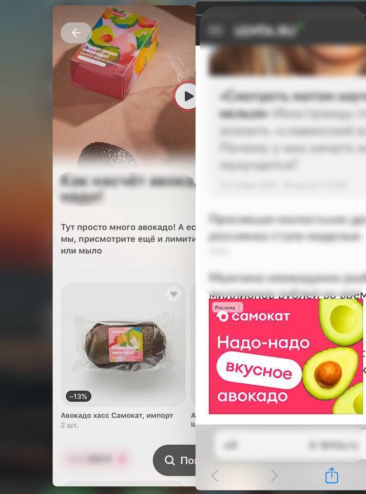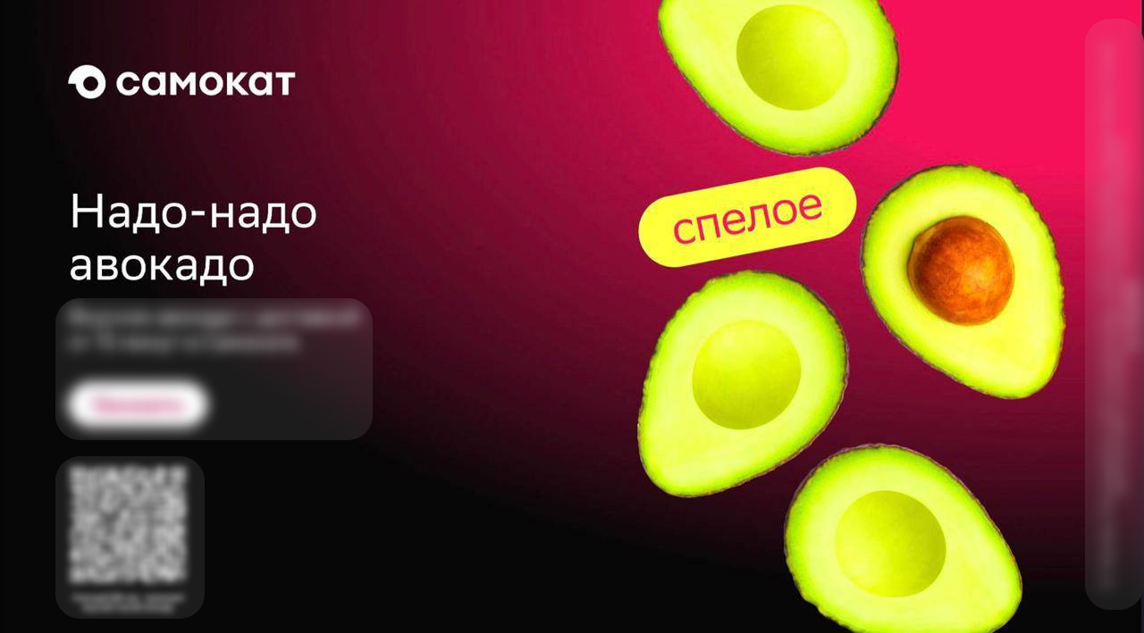 В конце 2025 года «Самокат» запустил проект, посвященный сезону авокадо. Его главная цель заключалась в том, чтобы максимально широко и заметно проинформировать пользователей о начале сезона, донести мысль, что именно сейчас авокадо самое спелое и вкусное. Второстепенная цель — привести пользователей сразу в приложение «Самоката» на карточку товара.
