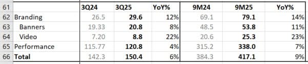 Вложения в третьем квартале составили 150,4 млрд руб. (рост +6% год к году). Доли перформанса и брендинга ― 120,8 млрд и 29,6 млрд руб., соответственно.