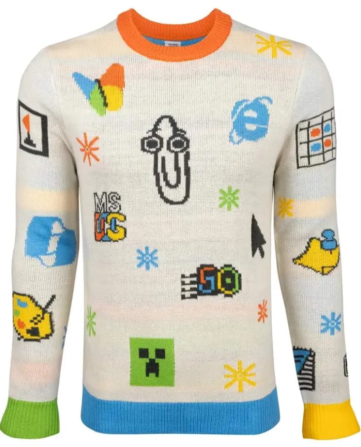 Заказать джемперы можно только через Microsoft Company Store. Одна из моделей получила название «Артефакт». На нем собраны вязаные иконки, например Clippy, Paint, Minesweeper, Internet Explorer.