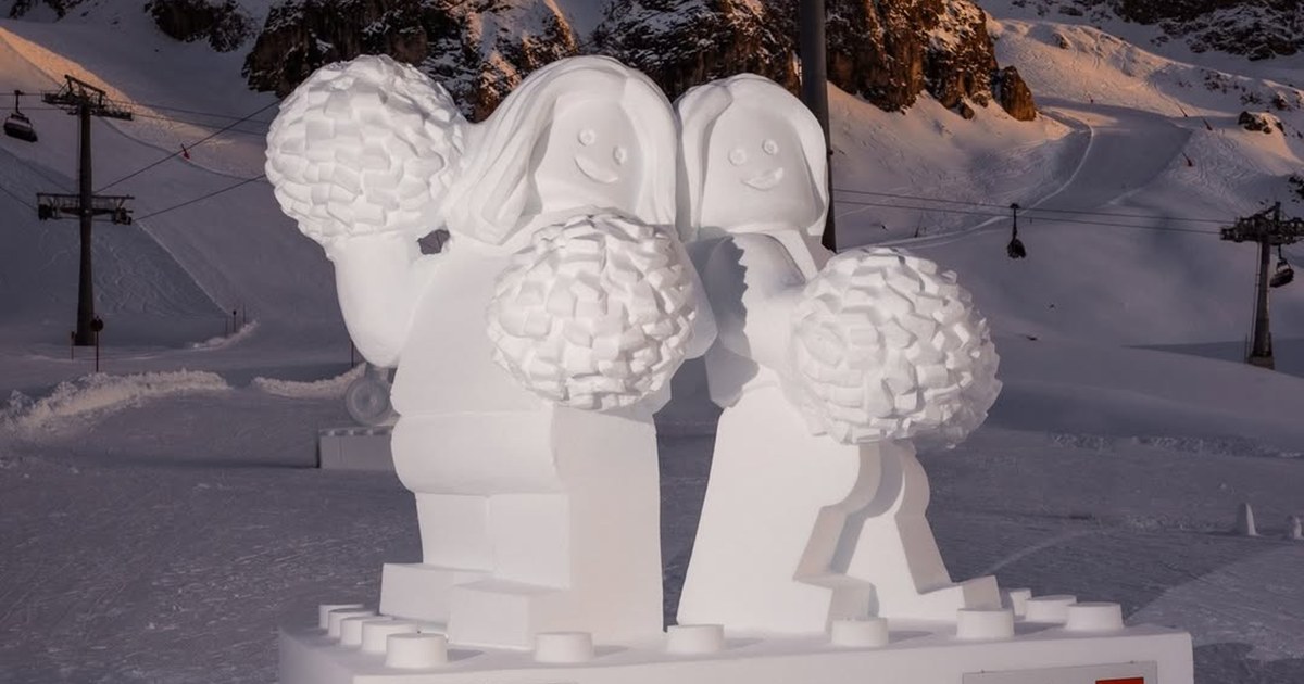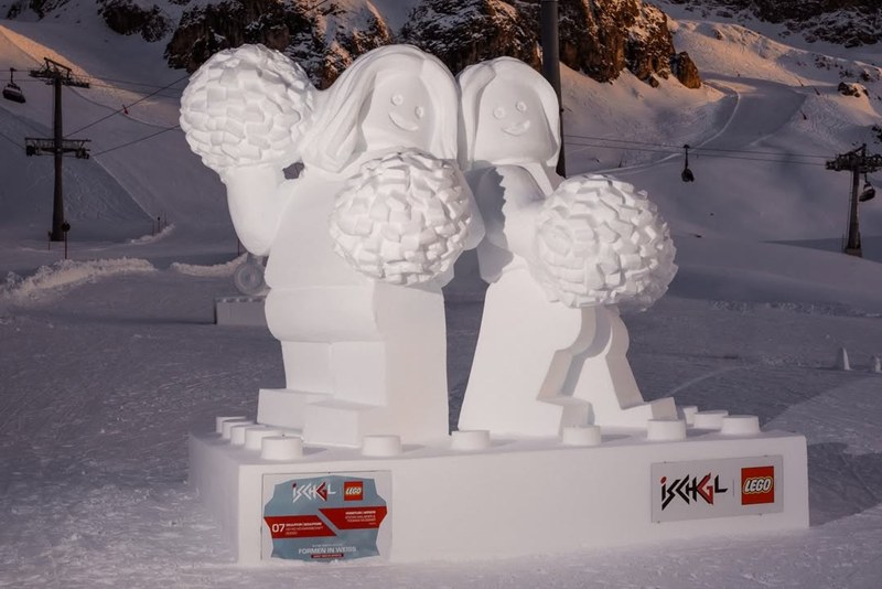 Фигуры изображают людей спорта. Это и саночники, и лыжники, и поддерживающие их чирлидерши — и даже как будто лишний в этом ряду теннисист. На самом деле, он отсылает к недавно прошедшему экспозиционный теннисный турнир в Ишгле, известному как Ischgl Trophy. Всего фигур 11, высота некоторых из них достигает 7 метров, а времени на вырезание, если верить соцсетям Lego ушло в общей сложности 5 дней.