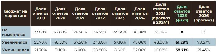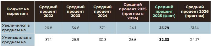 В нынешнем году бюджеты как росли, так и сокращались более интенсивно, чем ожидалось в прогнозах. Однако средний процент уменьшений оказался более значительным. В 2026 году маркетологи сообщили, что картина должна измениться, и более весомым станет рост бюджетов.