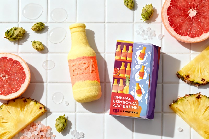 Торговая марка Essa 0.0 и косметический бренд Leosilverhome выпустили «пивные» бомбочки для ванны (без алкоголя). Велнесс-коллаборация появилась из пивного хмеля, масла ши и ароматической композиции ананаса и грейфрута. Все компоненты должны настроить на домашний отдых.