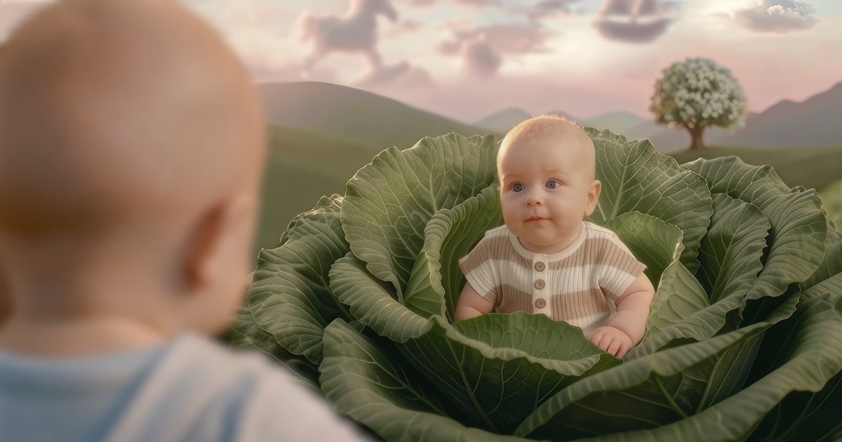 В рекламы кочаны капусты превратились в шезлонги для младенцев, а облака стали игрушечными. Идея кампании заключается в том, что дети не «ждут идеального момента, чтобы появиться на свет, а меры поддержки помогают молодым семья справиться с трудностями».