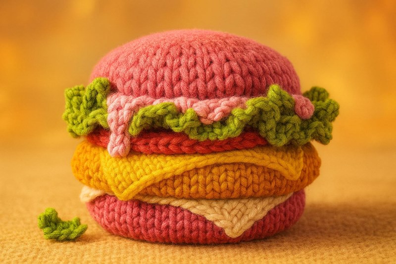 Бургер из пряжи и мягкий гроб: ИИ «связал» рекламные креативы