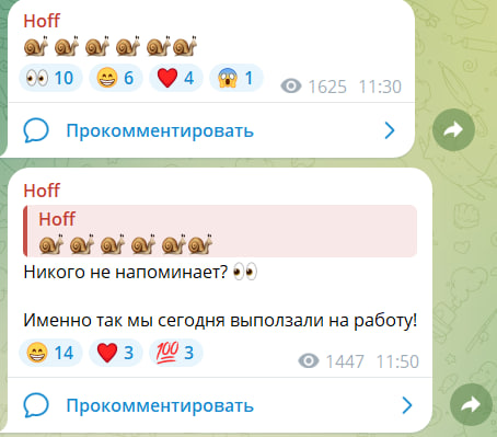 Российская сеть по продаже мебели и товаров для дома Hoff сравнила своих сотрудников с улитками, которые еле-еле двигаются. Потому что именно так они «торопились» на работу 12 января. Кажется, это были не только работники Hoff…