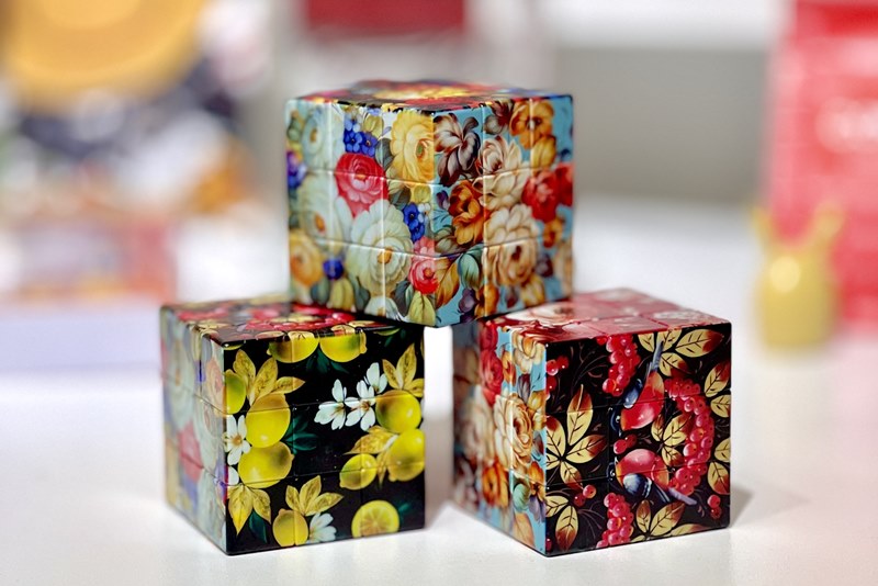 Жостовская фабрика и Friend Function создали кубик Рубика с цветочной росписью. На нем изображены композиции, которые были придуманы по мотивам работ художников предприятия.
