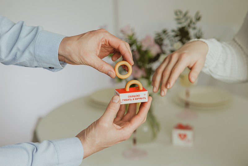Креативные кольца к 14 февраля также представил бренд продуктов для здорового питания «ВкусВилл» ― в виде «обручальных» сушек. Это самый доступный способ заявить о своих намерениях, рассказал бренд. Вдобавок к ним появились съедобные «валентинки-сердцеедки», которые можно получить через онлайн-доставку в Москве и Санкт-Петербурге.