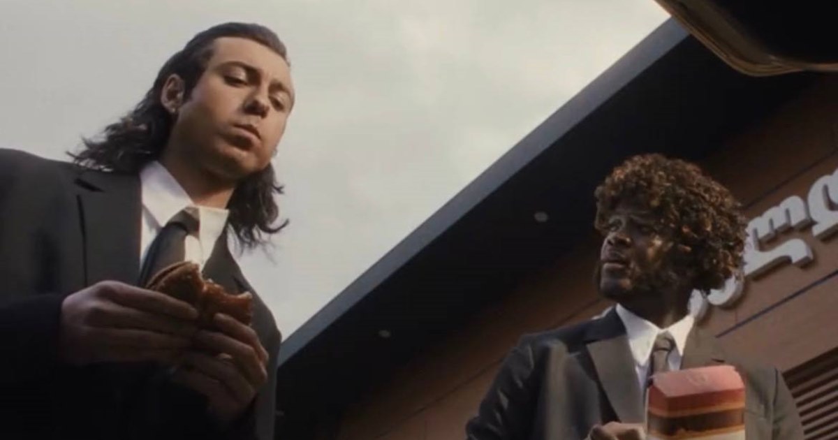 Сеть фастфуда показала бандитов Джулса и Винсента, которые едут в автомобиле и обсуждают новые позиции McDonald’s с роял чизбургерами. Причем этот сюжет повторяет сцену из оригинального фильма, когда герои говорят о культурных различиях между Европой и Америкой, и Винсент приводит в пример «роял с сыром» (royale with cheese) ― так называется один из гамбургеров McDonald’s в Париже.